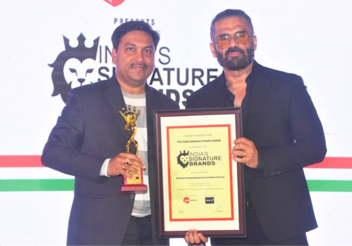 Pro-TEAM Solutions is proud to have been recognized as the Fastest Growing Management Consultant of the Year 2020, a significant milestone that reflects our rapid growth, innovation, and commitment to excellence. The award was presented by India’s Signature Brands at a prestigious event held at The Inn Hotel, Goa, on 28th February 2020, in the presence of eminent entrepreneurs, industry delegates, and social leaders. The honor was conferred by Mr. Sunil Shetty, a renowned personality from the Indian film industry, adding further prestige to the recognition.