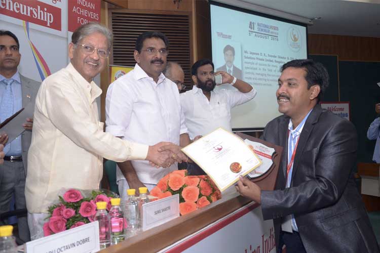 On 20th February 2018, the Founder & CEO of Pro-TEAM Solutions, Mr. CA Jayaram D R, was honored with the Outstanding Achievements in Business & Social Service award at the 44th Indian Achievers Seminar, organized under the Business Leadership Awards on the theme “Make in India: Creating & Enabling Environment for Entrepreneurs.” The award was presented by Mr. Sunil Shastri, son of former Prime Minister Lal Bahadur Shastri, adding significant prestige to the occasion. This recognition highlights Mr. Jayaram’s impactful contributions to both business excellence and social development. The Indian Achievers Forum serves as a national platform to promote entrepreneurship, knowledge sharing, and collaboration between the corporate and social sectors, encouraging leaders to contribute toward strengthening India’s social and economic infrastructure.